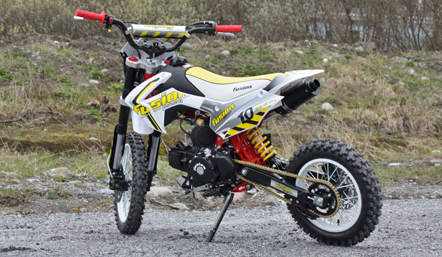 Täysin uudistunut Fusion Mosquito 140 on suurikokoinen crossipyörä, joka sopii jo täysikasvuisenkin ajettavaksi. Vääntävä 140cc 4-tahtimoottori