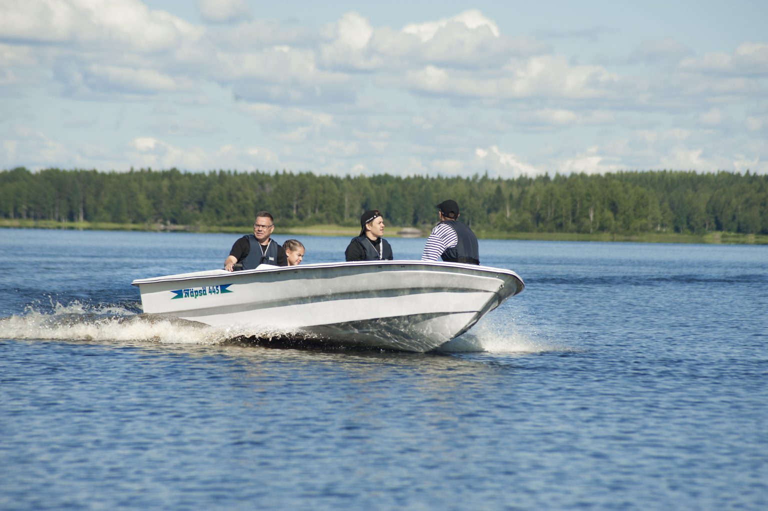 Tukeva ja turvallinen mökkivene isommillekin vesille. Suosittu, hinta-laatusuhteeltaan edullinen vetouisteluvene. Veneen sisäpohja on tasainen ja veneessä on tilaa liikkua. Näpsä 445-mallilla taitat pitkätkin kalareissut nopeasti ja vaivattomasti. Saatavana myös ohjauspulpetilla varustettuna. Sadevesityhjenevä. Soutumahdollisuus. CE-hyväksytty / VVT.