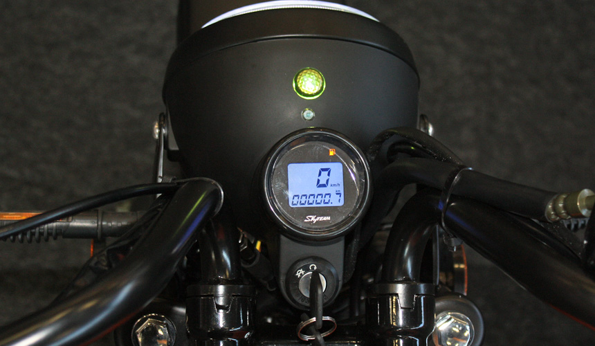 toiseen. Tämä lähes ikoniksi muodostunut menopeli on varustettu täysin nykyaikaisella tekniikalla; Skyteamin 50cc nelitahtimoottori on taloudellinen,