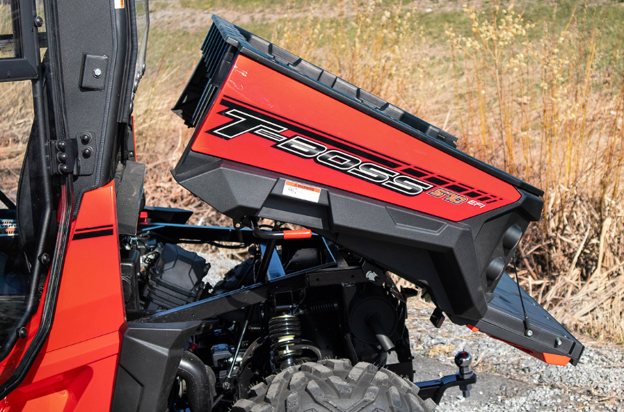500-kuutioisella EFI-moottorilla varustettu T-Boss on näppärä ja erittäin käytännöllinen rinnakkainistuttava mönkijä.